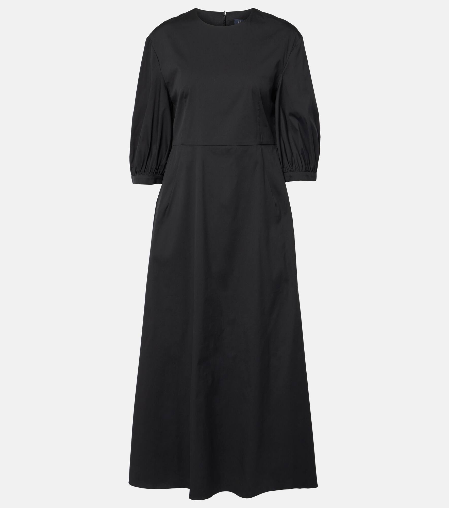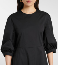 Balloon sleeves and a relaxed A-line silhouette define the Clea midi dress from Max Mara. Note how subtle pleats shape the skirt and add a romantic touch to this sleek style. Product Details - Material: 80% cotton, 18% polyamide, 2% elastane - Care instructions: machine wash at 30 degrees - Made in Romania - Designer color name: Nero - Closure: concealed zipper - Pockets: side slit pockets - Lining: 80% cotton, 18% polyamide, 2% elastane - Item number: P01017164 Size & Fit - True to size - Dropped shoulders - Straight fit - Non-stretchy fabric - DT = German size - The model seen in the picture is 178cm-5'10" and wearing a size DT 34