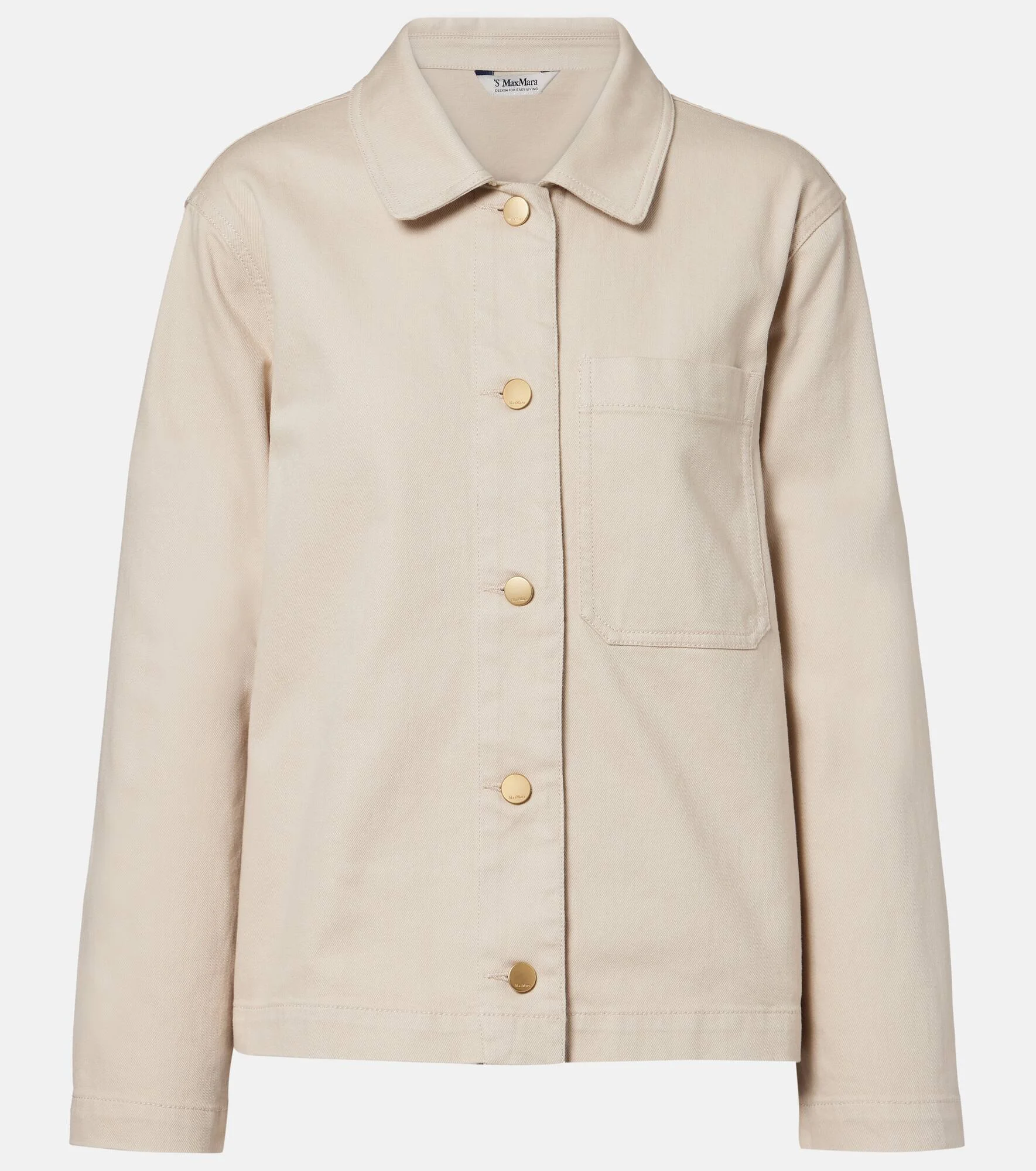 'S Max Mara conveys contemporary elegance through streamlined silhouettes and premium fabrics. Made from denim, the Fascino overshirt features gold-toned buttons and is complete with a patch pocket on the front. Product Details - Material: 99% cotton, 1% elastane - Care instructions: machine wash at 30 degrees - Made in Morocco - Color: beige - Designer color name: Naturale - Item color: beige - Hardware color: gold - Pockets: patch pockets - Closure: buttoned front - Item number: P01125846 Size & Fit - True to size - Straight fit - Non-stretchy fabric - Falls below the hip - The model seen in the picture is 178cm-5'10" and wearing a size DE 34