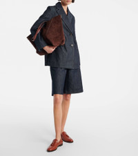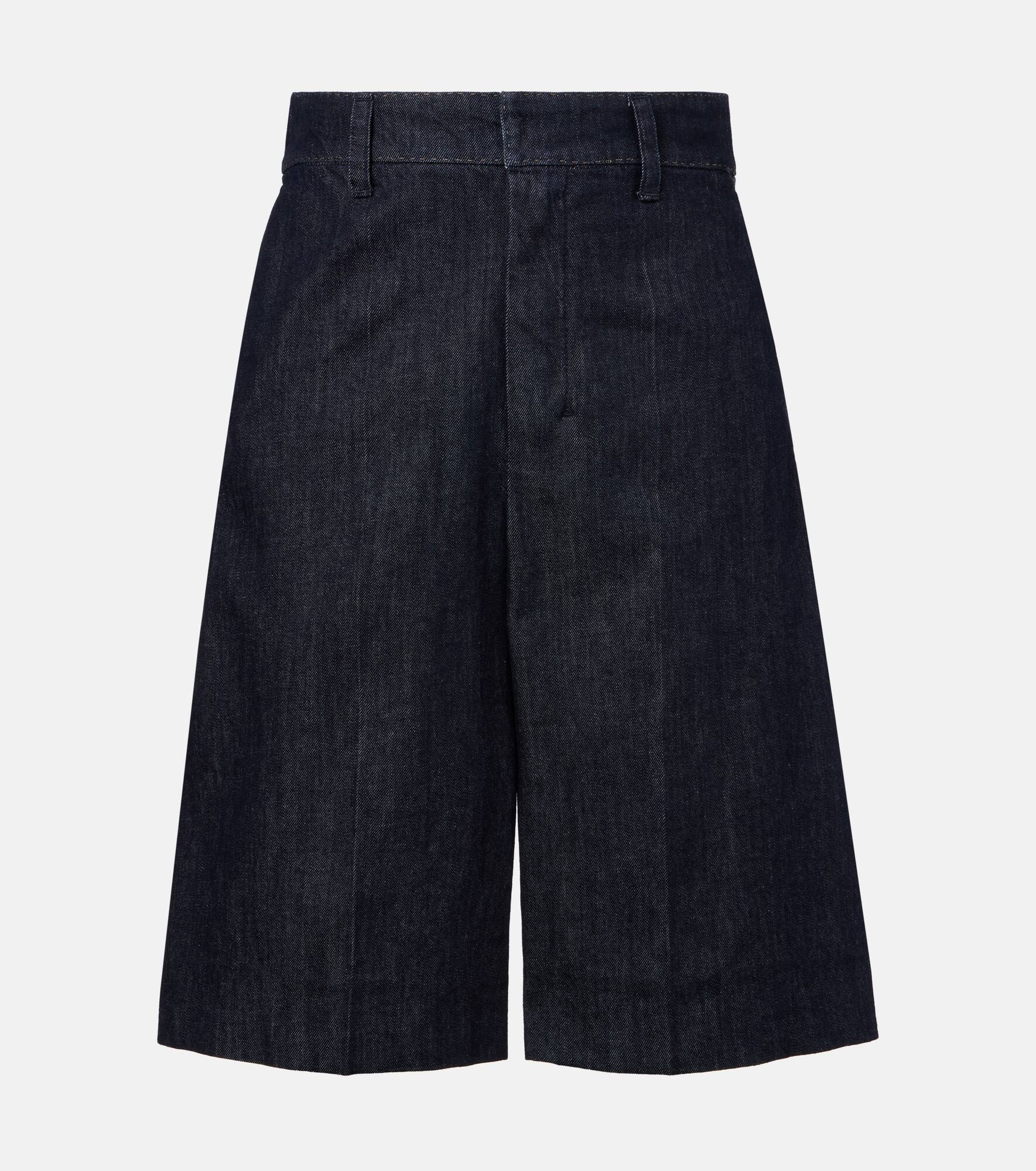 Crafted from denim, the Frank Bermuda shorts from 'S Max Mara feature a flattering high-rise silhouette with a tailored construction. The straight-cut design is complete with slant pockets at the sides and welt pockets at the back. Product Details - Material: 93% cotton, 7% kapok - Care instructions: machine wash at 30 degrees - Made in Morocco - Designer color name: Blue Pulito - Item color: blue - Pockets: side slit pockets, welt pockets - Closure: zip, hook, and button fastening - Belt loops - Item number: P01079029 Size & Fit - True to size - Non-stretchy fabric - Wide-leg - The model seen in the picture is 178cm-5'10" and wearing a size DE 34