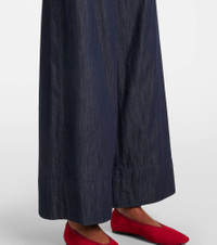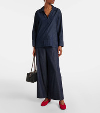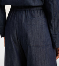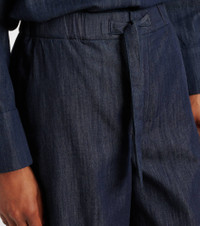 Effortless silhouettes and refined essentials – ‘S Max Mara captures the quiet power of modern, everyday sophistication. The Jour wide-leg pants are made from cotton chambray and feature slant and back pockets. Product Details - Material: 100% cotton - Care instructions: machine wash at 30 degrees - Made in Morocco - Designer color name: Scuro Pulito - Item color: blue - Lining: 96% cotton, 4% elastane - Elasticated drawstring waist - Pockets: slant pockets, back pocket - Item number: P01079080 Size & Fit - True to size - Elasticated waist - Adjustable at the waist - Non-stretchy fabric - Wide-leg - High-rise - The model seen in the picture is 178cm-5'10" and wearing a size DE 34