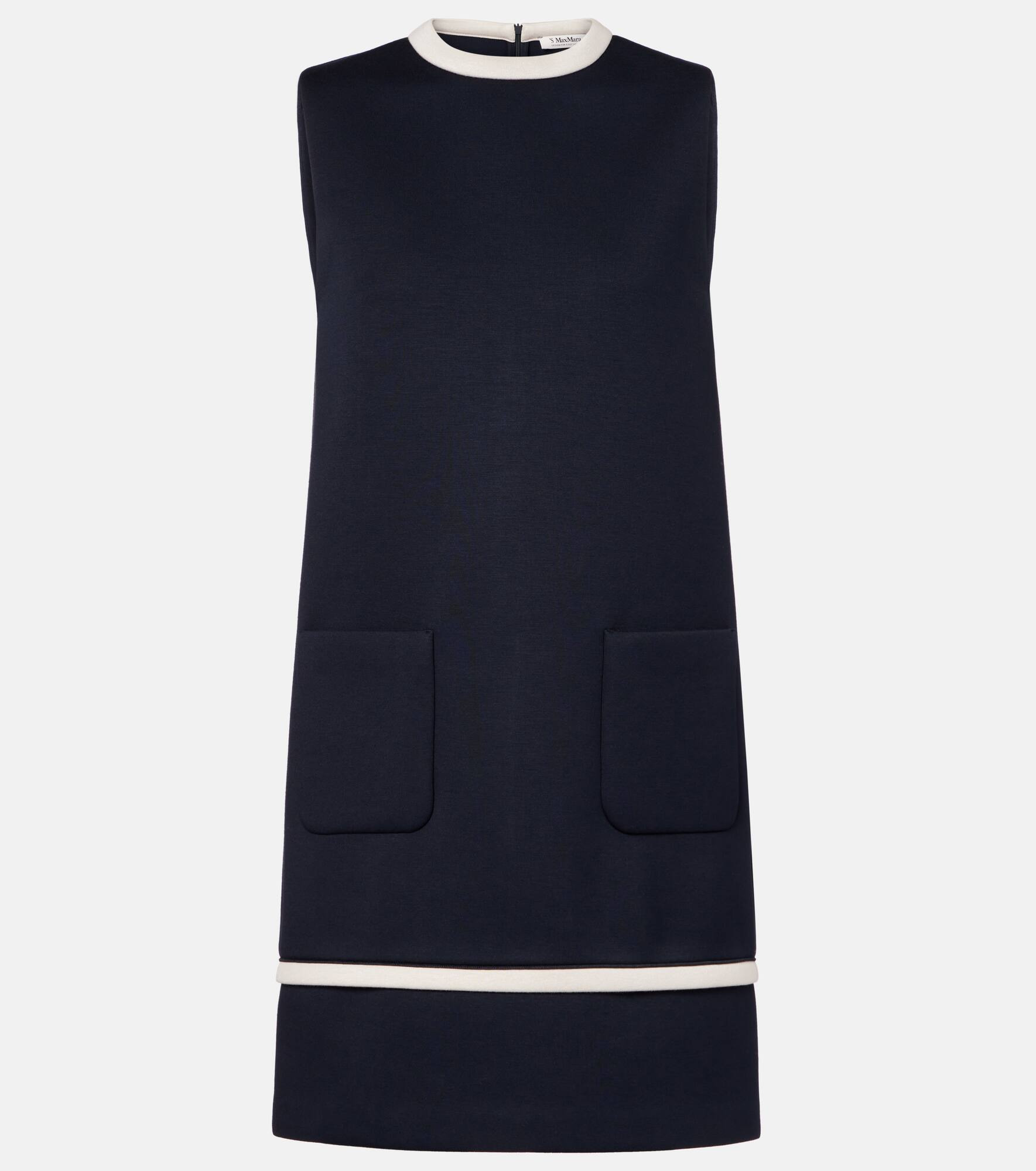 Favoring streamlined silhouettes and premium fabrics, 'S Max Mara conveys contemporary elegance. At once elegant and understated, the Lago minidress has a minimalist cut and is finished with contrast trims. Product Details - Material: 96% viscose, 4% elastane - Care instructions: hand wash - Made in China - Designer color name: Classic Dark - Item color: blue, white - Closure: zipped back - Pockets: patch pockets - Item number: P01079087 Size & Fit - True to size - Straight fit - Stiff material - Slightly stretchy fabric - The model seen in the picture is 178cm-5'10" and wearing a size XS