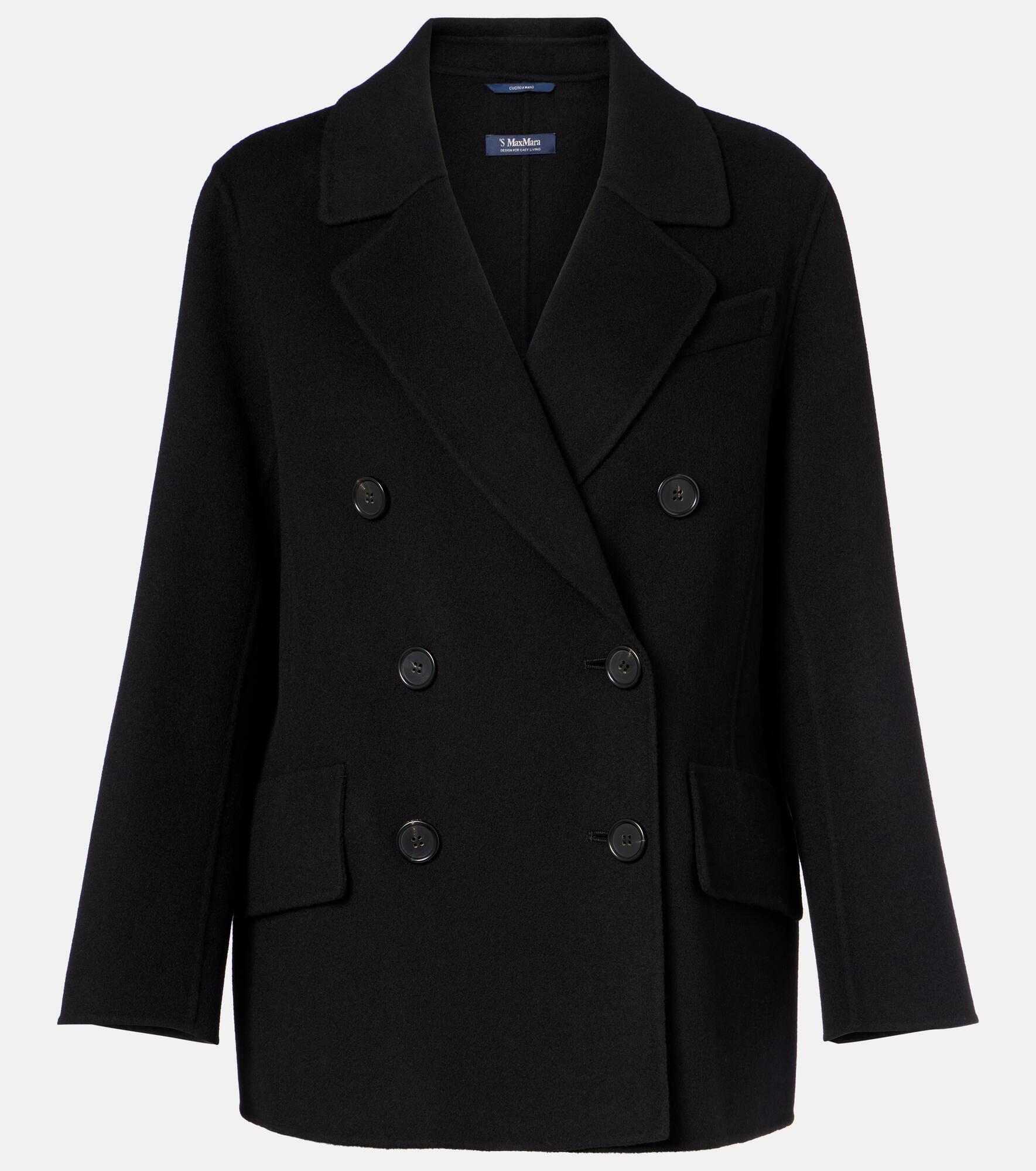 Favoring streamlined silhouettes and premium fabrics, 'S Max Mara conveys contemporary elegance. The Lukas peacoat is cut from virgin wool into a double-breasted silhouette with notch lapels. Product Details - Material: 100% virgin wool - Care instructions: dry clean - Made in Cambodia - Designer color name: Black - Item color: black - Lining: 100% silk - Contains non-textile parts of animal origin - Item number: P01079010 Size & Fit - True to size - Designed for a loose fit - Non-stretchy fabric - Falls below the hip - The model seen in the picture is 178cm-5'10" and wearing a size DE 34