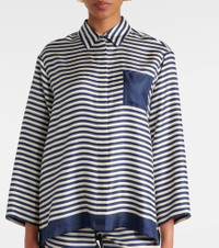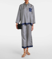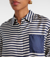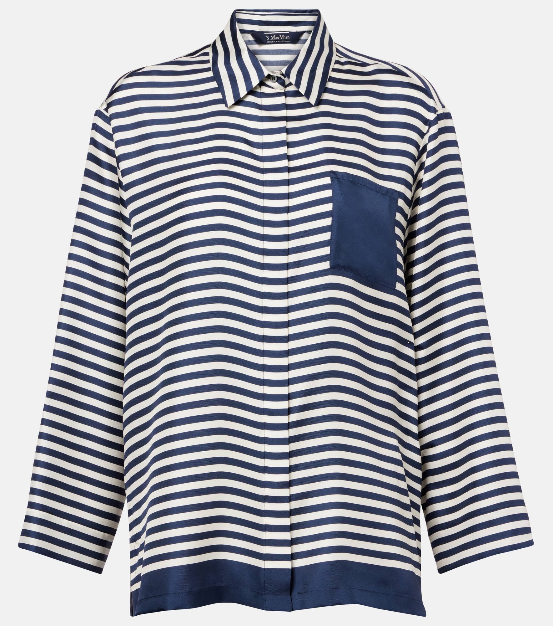 Favoring streamlined silhouettes and premium fabrics, 'S Max Mara conveys contemporary elegance. Meticulously made from lustrous silk, the Maya shirt features a classic striped pattern and is completed with a pointed collar. Product Details - Material: 100% silk - Care instructions: dry clean - Made in Romania - Designer color name: Riga Ecru/ Blue - Item color: beige, blue, multicolor - Closure: concealed buttoned front - Pockets: angled chest pocket - Item number: P01025183 Size & Fit - True to size - Dropped shoulders - Designed for a loose fit - Non-stretchy fabric - Falls below the hip - The model seen in the picture is 178cm-5'10" and wearing a size DE 34