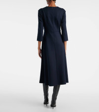 Favoring streamlined silhouettes and premium fabrics, 'S Max Mara conveys contemporary elegance. The Orione midi dress features a flowing silhouette with a V-neckline, cinched waist, and side-slit pockets. Product Details - Material: 37% wool, 35% cotton, 15% polyester, 8% viscose, 5% polyamide - Care instructions: dry clean - Made in China - Designer color name: Dark Blue - Item color: blue - Collar: V-neck - Pockets: side slit pockets - Closure: concealed zipper, zipped back - Item number: P01094707 Size & Fit - True to size - Cinched waist - Slightly stretchy fabric - The model seen in the picture is 178cm-5'10" and wearing a size XS