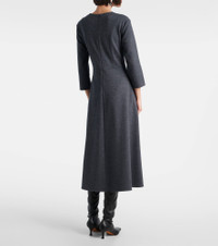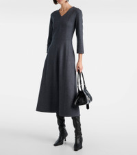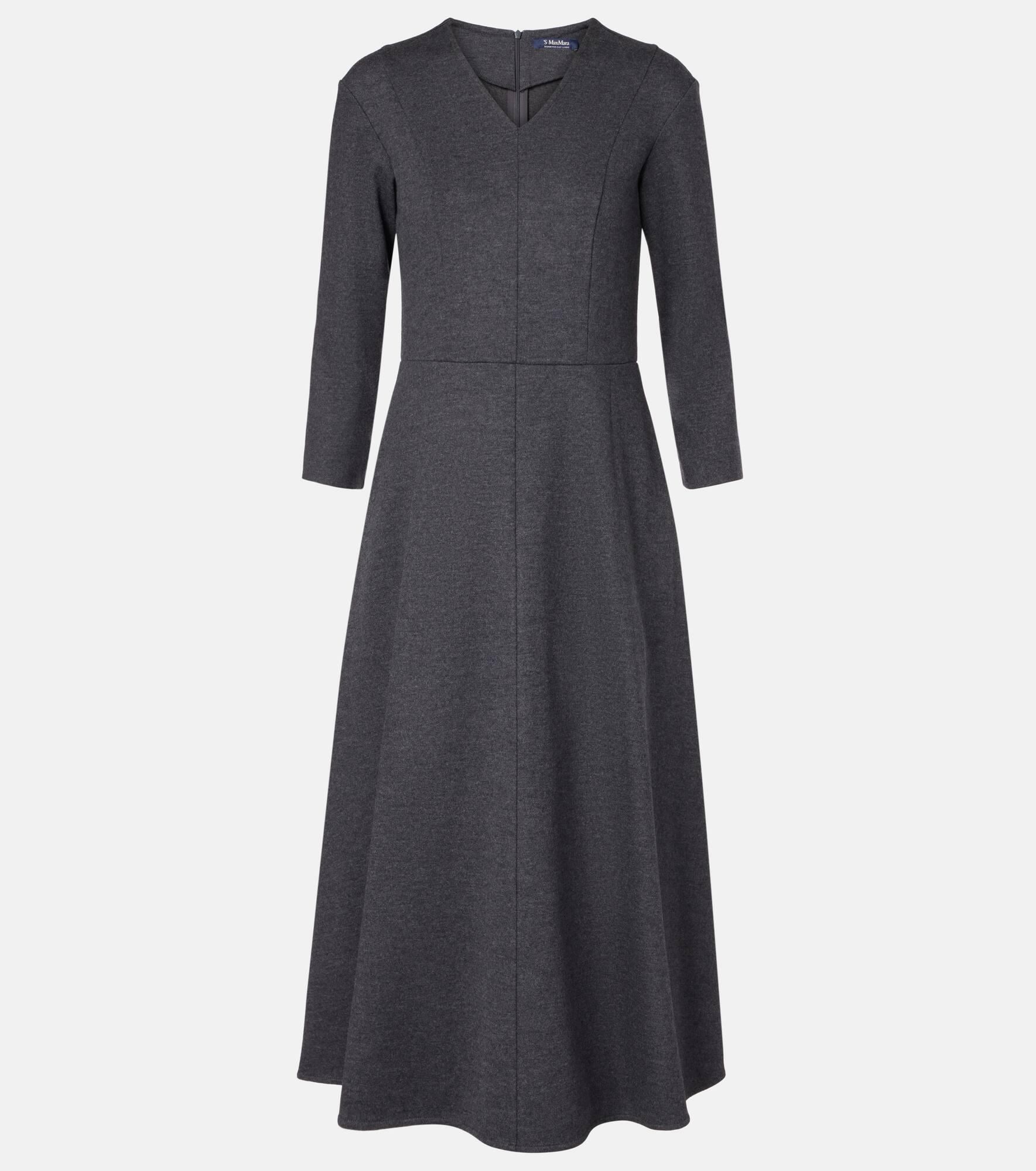 Favoring streamlined silhouettes and premium fabrics, 'S Max Mara conveys contemporary elegance. The Orione midi dress features a sleek silhouette with a V-neckline, cinched waist, and side-slit pockets. Product Details - Material: 37% wool, 35% cotton, 15% polyester, 8% viscose, 5% polyamide - Care instructions: dry clean - Made in China - Designer color name: Grey Melange - Item color: gray - Collar: V-neck - Pockets: side slit pockets - Closure: concealed zipper, zipped back - Item number: P01094706 Size & Fit - True to size - Cinched waist - Slightly stretchy fabric - The model seen in the picture is 178cm-5'10" and wearing a size XS