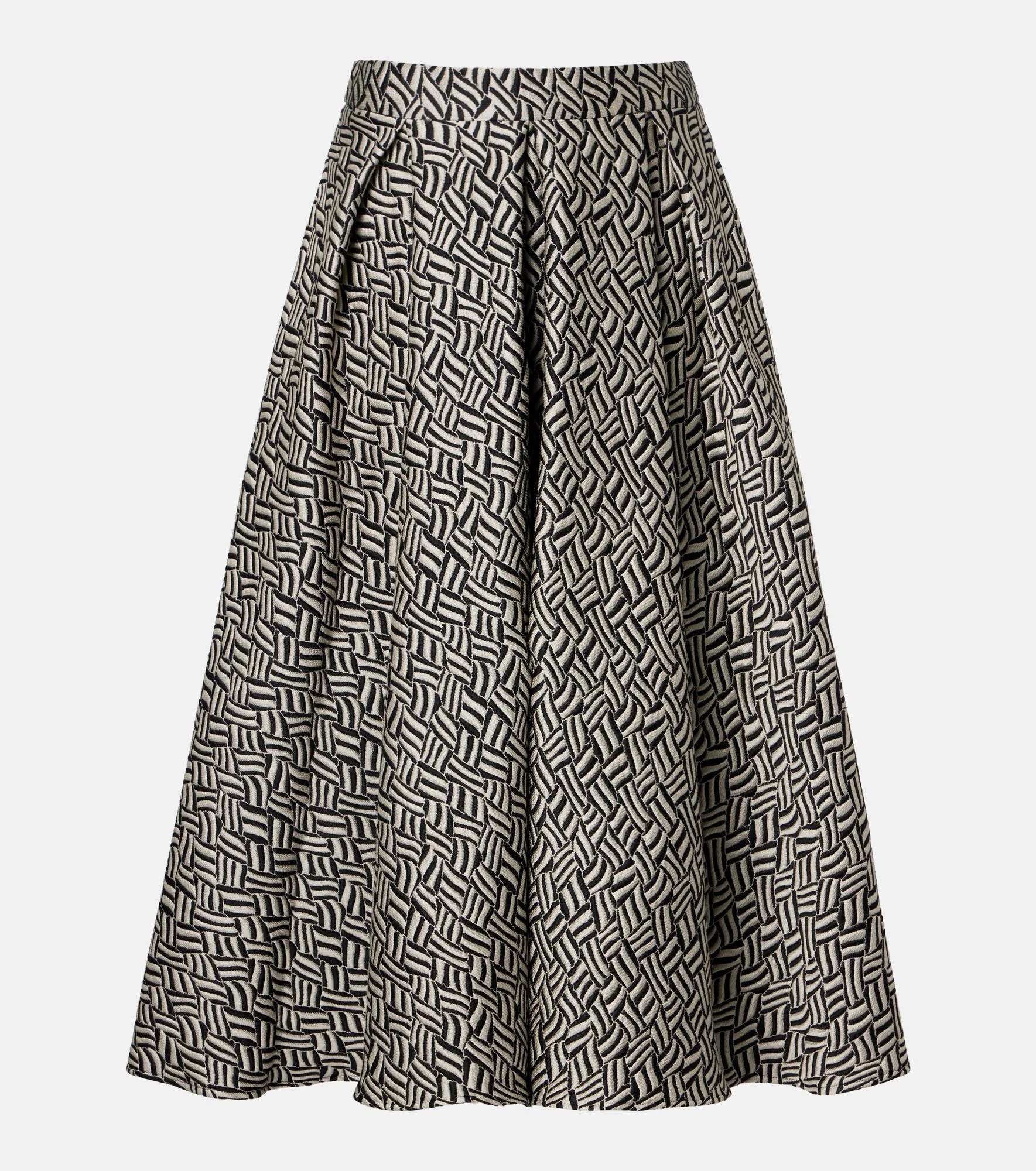 'S Max Mara conveys contemporary elegance through streamlined silhouettes and premium fabrics. The Perle midi skirt has a full pleated silhouette crafted from a cotton blend jacquard. Product Details - Material: 56% cotton, 34% polyester, 6% silk, 4% polyamide - Care instructions: dry clean - Made in Romania - Color: black - Designer color name: Jacquard - Closure: concealed zipped back - Pockets: side slit pockets - Item number: P01125805 Size & Fit - True to size - Non-stretchy fabric - High-waisted - The model seen in the picture is 178cm-5'10" and wearing a size DE 34