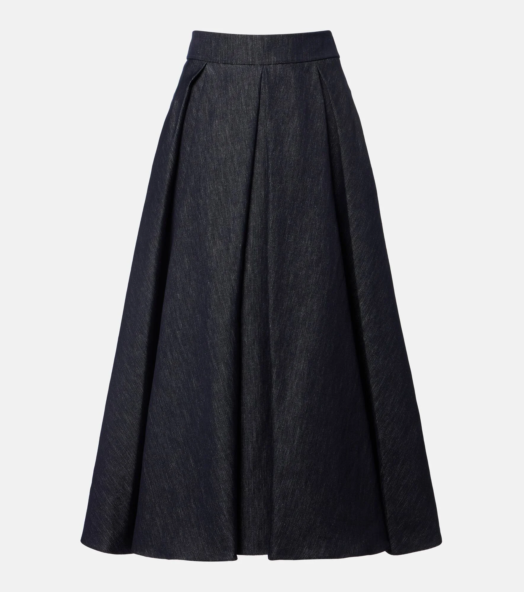Pleated denim midi skirt