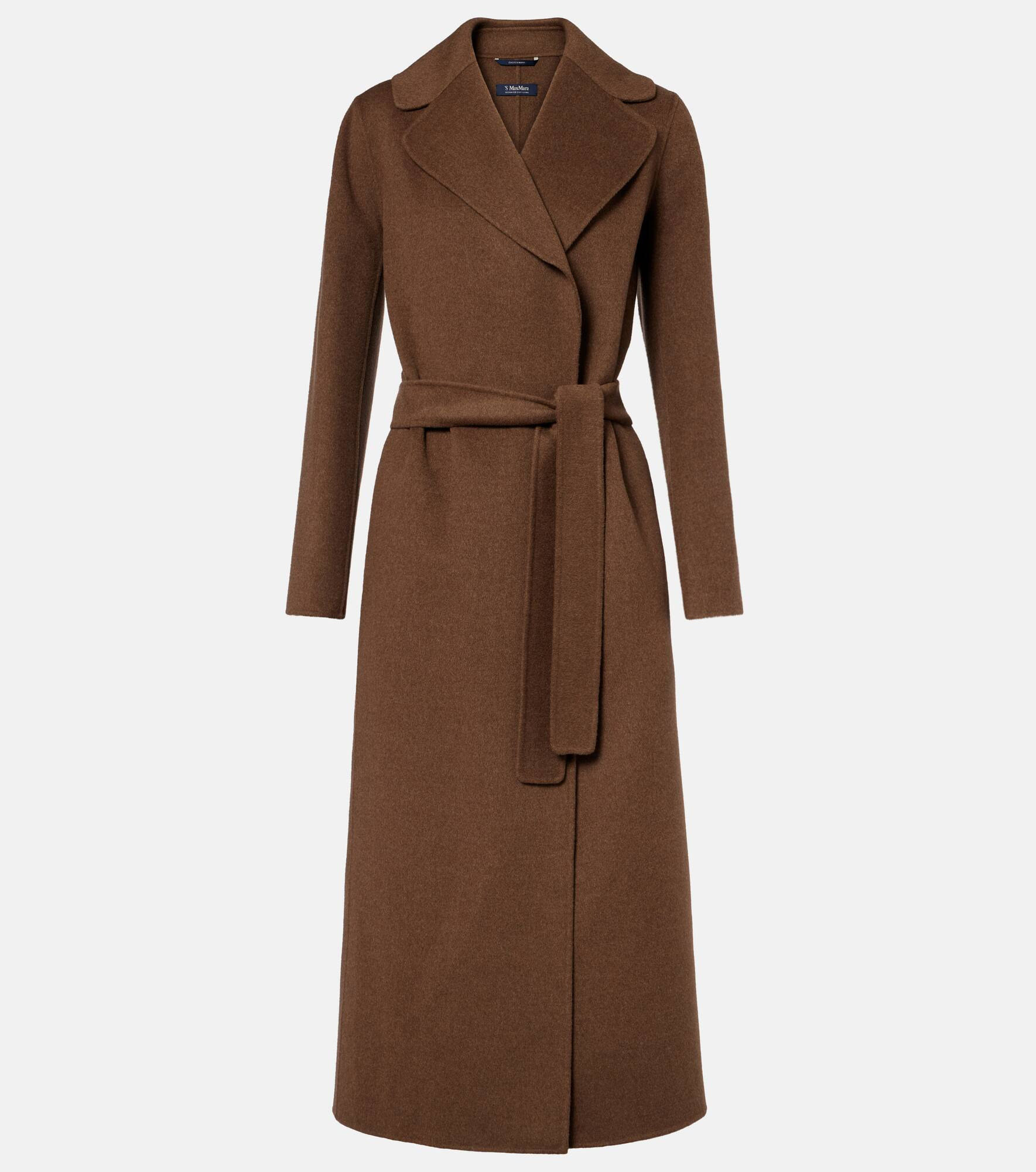 Invest in timeless sophistication and unwavering comfort with the Poldo coat from 'S Max Mara. Made from virgin wool, it’s cut to a long, relaxed silhouette with exaggerated lapels and sash ties at the waist. Product Details - Material: 100% virgin wool - Care instructions: dry clean - Made in China - Designer color name: Mink - Item color: brown - Pocket lining: 100% silk - Notched lapel - Shoulder pads - Pockets: side slit pockets - Detachable belt - Vent: single - Unlined - Item number: P01094650 Size & Fit - True to size - Loose fit, comes with belt - Non-stretchy fabric - The model seen in the picture is 178cm-5'10" and wearing a size DE 34