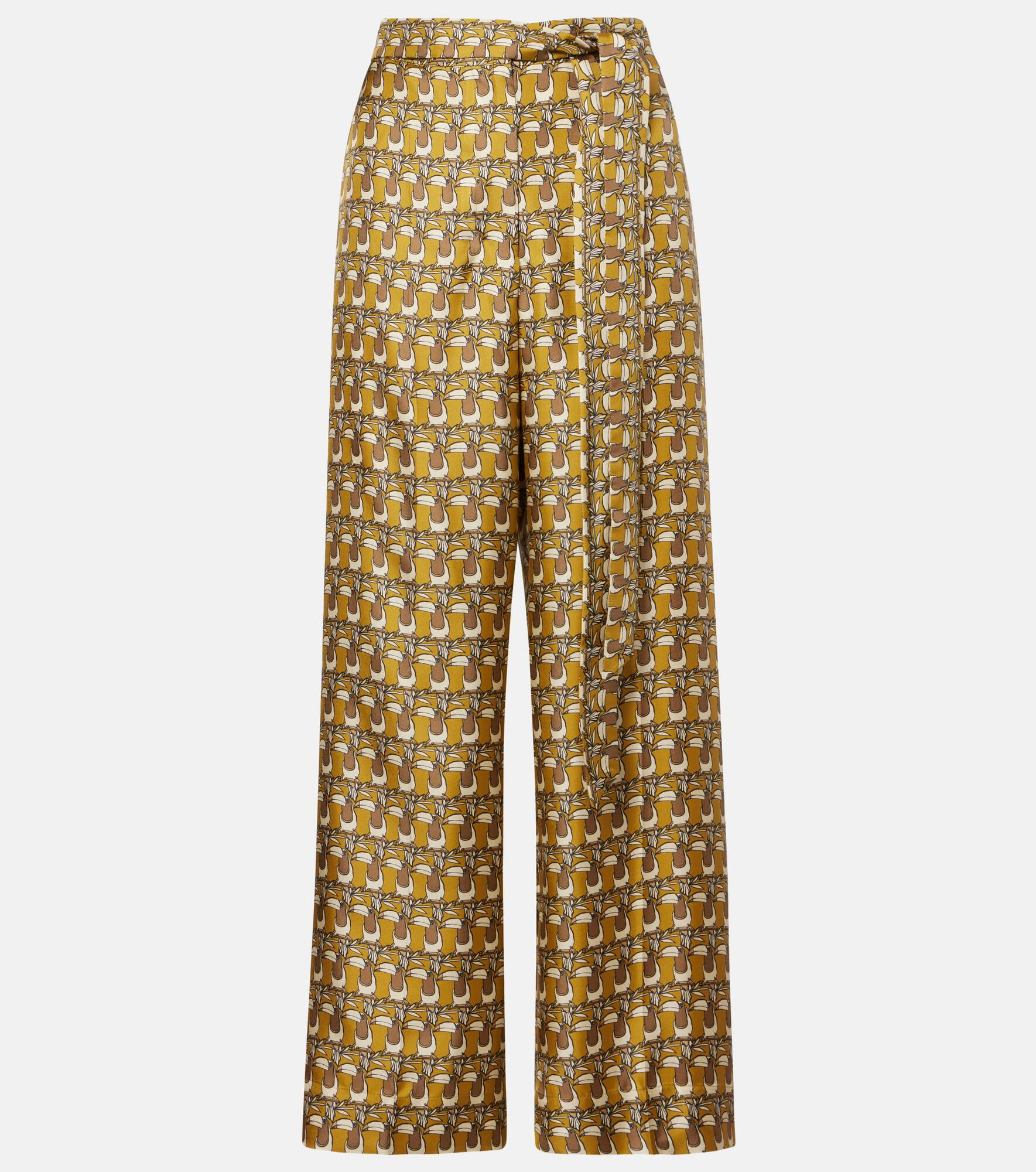 Favoring streamlined silhouettes and premium fabrics, 'S Max Mara conveys contemporary elegance. These breezy silk pants feature a classic wide-leg design and are finished with a lively toucan print. Product Details - Material: 100% silk - Care instructions: dry clean - Made in Romania - Designer color name: Disegno Tucani - Item color: multicolor - Closure: zip, hook, and button fastening - Pockets: side slit pockets - Belt loops - Detachable belt - Item number: P01079078 Size & Fit - True to size - Elasticated waist - Non-stretchy fabric - Wide-leg - The model seen in the picture is 178cm-5'10" and wearing a size DE 34