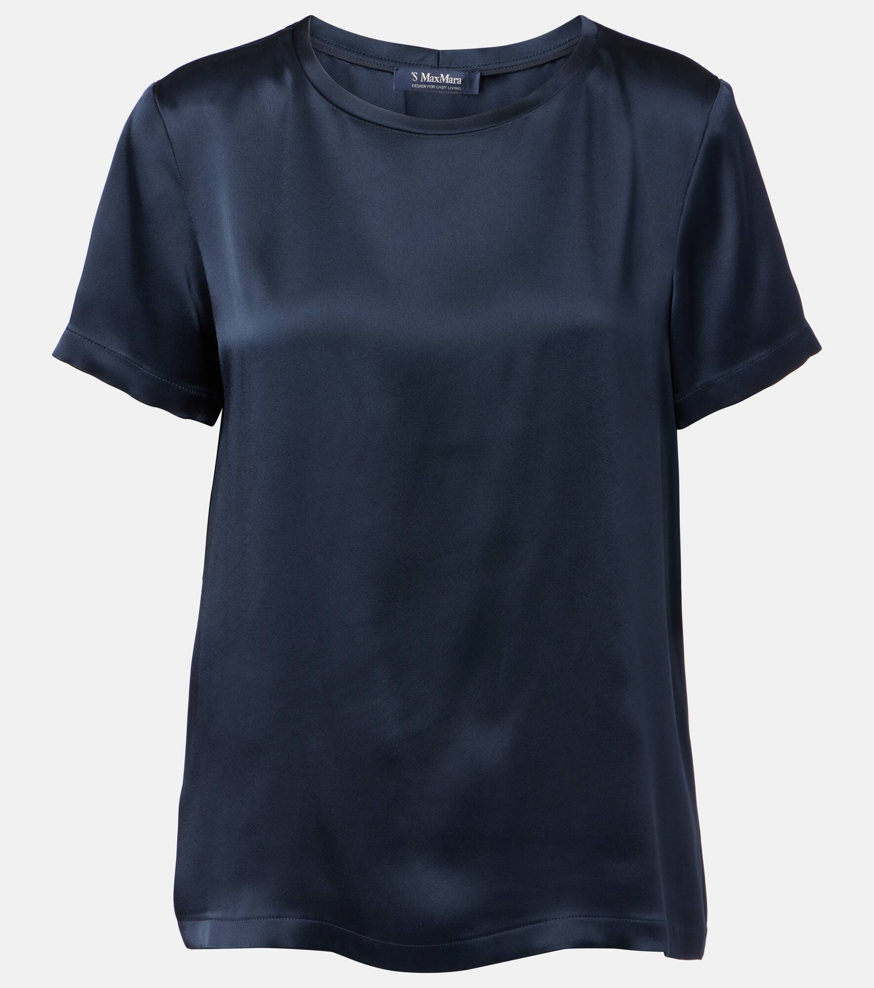 Favoring streamlined silhouettes and premium fabrics, 'S Max Mara conveys contemporary elegance. The Rebecca T-shirt is made purely from satin. Product Details - Material: 64% acetate, 36% viscose - Care instructions: dry clean - Made in Romania - Designer color name: Intense Dark - Item color: blue - Item number: P01079031 Size & Fit - True to size - Straight fit - Non-stretchy fabric - Falls to the hip - The model seen in the picture is 178cm-5'10" and wearing a size DE 34