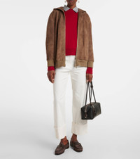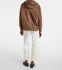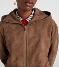 Favoring streamlined silhouettes and premium fabrics, 'S Max Mara embodies contemporary elegance. This warm zip-up hoodie is crafted from suede and features gold-toned accents, ribbed trims, a two-way zip fastening, and practical side pockets. Product Details - Material: 100% lamb leather (suede) - Care instructions: specialist clean - Made in India - Designer color name: Honey - Item color: brown - Lining: 100% silk - Filling: 48% polyester, 48% camel hair, 4% silk - Material II: 80% acrylic, 20% wool - Item number: P01079063 Size & Fit - True to size - Dropped shoulders - Designed for a loose fit - Non-stretchy fabric - Falls below the hip - The model seen in the picture is 178cm-5'10" and wearing a size DE 38