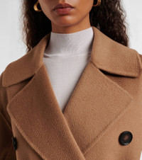 Crafted from wool and cashmere, this coat from 'S Max Mara features a double-breasted style with welt pockets. The piece is finished with a lapel collar and slightly dropped shoulders. Product Details - Material: 70% wool, 30% cashmere - Care instructions: dry clean - Made in China - Designer color name: Perfect Camel - Item color: brown - Contains non-textile parts of animal origin - Detachable belt - Pockets: welt pockets - Closure: double-breasted (six buttons) - Unlined - Item number: P01079009 Size & Fit - Fits large to size - we recommend trying one size smaller - Dropped shoulders - Loose fit, comes with belt - Non-stretchy fabric - The model seen in the picture is 178cm-5'10" and wearing a size DE 32