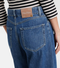 S Max Mara conveys contemporary elegance through streamlined silhouettes and premium fabrics. Case in point, the Zeus jeans are cut into a wide-leg silhouette and feature a classic five-pocket construction. Product Details - Material: 93% cotton, 7% kapok - Care instructions: machine wash cold - Made in Tunisia - Color: blue - Designer color name: Medio Pulito - Item color: blue - Closure: zipper fly, button fastening - Pockets: five pockets - Belt loops - Item number: P01125834 Size & Fit - Fits small to size - we recommend trying one size larger - Non-stretchy fabric - Wide-leg - High-rise - The model seen in the picture is 178cm-5'10" and wearing a size DE 36