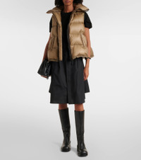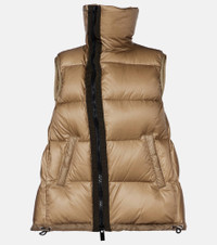 Top off your cold-season looks with this quilted vest from Sacai. Down-filled for optimal insulation, this contemporary design boasts an asymmetric construction with a high neck and an offset zipped front. Product Details - Material: 100% nylon - Care instructions: dry clean - Made in China - Designer color name: D/Beige - Item color: beige, brown - Trim: 100% polyester - Lining: 100% nylon - Filling: 100% polyester - Filling II: 90% down, 10% feathers - Item number: P01070188 Size & Fit - True to size - Adjustable hem - Oversized - The model seen in the picture is 178cm-5'10" and wearing a size 1