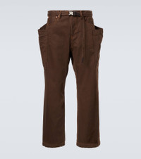 Sacai’s penchant for hybrid designs sees contrasting textures, fabrics, and techniques combined to create entirely unique and innovative styles. These mid-rise, straight-leg jeans feature exaggerated cargo pockets and a utilitarian-inspired belt. Product Details - Material: 100% cotton - Care instructions: dry clean - Made in Japan - Designer color name: Brown - Item color: brown - Closure: zip and button fastening - Belt loops - Pockets: slant pockets, cargo pockets, patch - Detachable belt - Item number: P01068439 Size & Fit - True to size - Adjustable at the waist - Non-stretchy fabric - Straight leg - Mid-rise - Height of model is 188cm-74" and wears a size 4