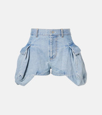 Sacai is known for artfully offbeat pieces that explore the silhouette and proportions of clothing, and these denim shorts are a perfect example. Made in Japan from cotton denim, they feature exaggerated cargo pockets Product Details - Material: 100% cotton - Care instructions: dry clean - Made in Japan - Designer color name: L/Blue - Item color: blue - Closure: zipper fly, button fastening - Belt loops - Pockets: cargo pockets - Item number: P01066688 Size & Fit - Fits large to size - we recommend trying one size smaller - Non-stretchy fabric - Straight leg - High-waisted - The model seen in the picture is 178cm-5'10" and wearing a size 0