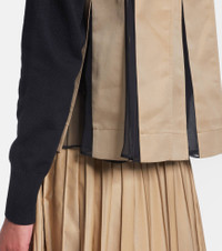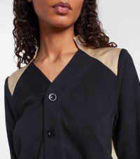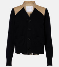 Sacai’s penchant for hybrid designs sees contrasting textures, fabrics, and techniques combined, as seen in this cardigan. This style is defined by a pleated back in cotton-blend gabardine, juxtaposed with a knitted construction. Product Details - Material: 57% cotton, 43% polyester - Care instructions: dry clean - Made in Japan - Designer color name: Black x Beige - Item color: black, beige - Material II: 63% cotton, 37% polyester - Material III: 100% polyester - Closure: buttoned front - Pockets: patch pockets - Item number: P01070180 Size & Fit - True to size - Designed for a loose fit - Partly stretchy fabric - Falls to the hip - The model seen in the picture is 178cm-5'10" and wearing a size 1