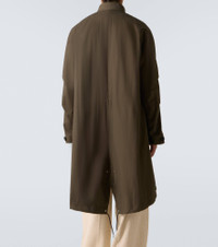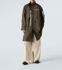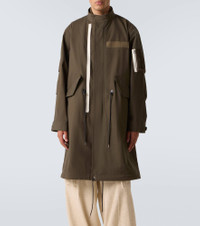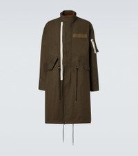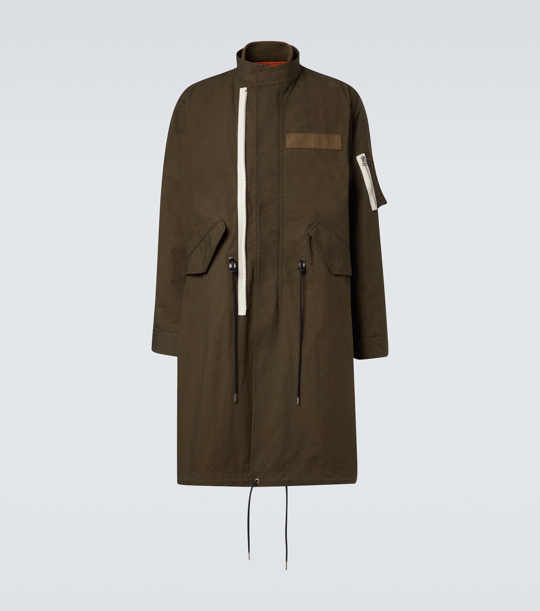 An edgy take on a classic ripstop jacket, this Sacai style offers elevated comfort for everyday dressing. Crafted from a durable cotton-blend, the utility-inspired design features an integrated padded liner for warmth, a paneled construction, and an asymmetric zip closure. Product Details - Material: 53% cotton, 47% nylon - Care instructions: dry clean - Made in Japan - Designer color name: Khaki - Item color: green - Trim: 100% nylon - Material II: 53% acrylic, 36% wool, 10% polyester, 1% polyurethane - Filling: 100% polyester - Lining: 100% polyester - Closure: two-way zipped front with snap-button fastenings - Drawstring waist - Pockets: snap-buttoned pockets, sleeve pocket - Cuff: tab cuff - Item number: P01068421 Size & Fit - Fits large to size - we recommend trying one size smaller - Loose fit, drawstring waist - Adjustable hem - Non-stretchy fabric - Height of model is 188cm-74" and wears a size 3