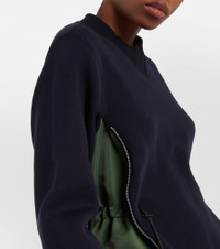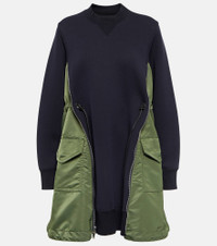 This navy cotton minidress with side contrast panels showcases Sacai's passion for hybrid designs. The panels feature flap pockets and can be zipped to alter the silhouette of the dress, making this casual style utilitarian. Product Details - Material: 100% cotton - Care instructions: dry clean - Closure: zipped front - Designer color name: Navy - Trim: 100% polyester - Pockets: snap-buttoned pockets - Made in Japan - Item number: P00851152 Size & Fit - True to size - Designed for an extremely oversized fit - Loose fit, drawstring waist - Adjustable hem - Mid-weight material - The model seen in the picture is 178cm-5'10" and wearing a size 1