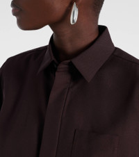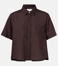 This Sacai shirt is crafted from a lightweight fabric with a shiny, satin-like finish. Made to a boxy silhouette, the slightly oversized design features a cropped silhouette and a concealed buttoned front. Product Details - Material: 70% polyester, 30% wool - Care instructions: dry clean - Made in Japan - Designer color name: Brown - Item color: brown - Lining: 100% cupro - Details: 100% nylon - Collar: classic (Straight point) - Pockets: angled chest pocket - Closure: concealed buttoned front - Item number: P01066683 Size & Fit - True to size - Designed for a loose fit - Partly stretchy fabric - Slightly cropped - The model seen in the picture is 178cm-5'10" and wearing a size 1