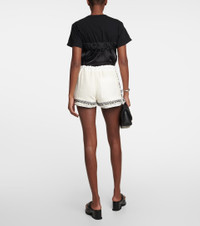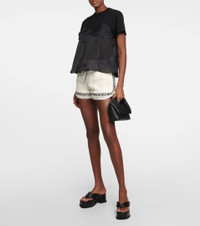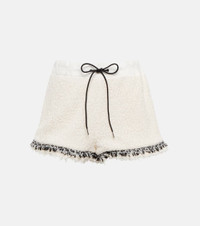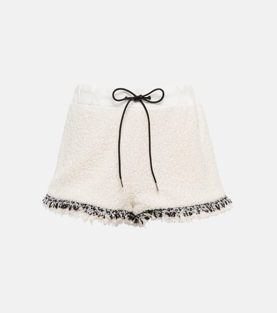 Sacai’s penchant for hybrid designs sees contrasting textures, fabrics, and techniques combined to create entirely unique and innovative styles. Merging tailoring with relaxed elements, these tweed drawstring shorts have a satin waistband and frayed trim. Product Details - Material II: 60% cotton, 40% nylon - Care instructions: dry clean - Lining: 100% cupro - Elasticated drawstring waist - Material III: 60% acrylic, 1% polyester, 5% polyamide, 34% wool - Designer color name: Off White - Made in Japan - Material: 67% nylon, 33% cotton - Item number: P00769013 Size & Fit - True to size - Elasticated waist - Adjustable at the waist - Mid-weight material - Wide-leg - The model seen in the picture is 178cm-5'10" and wearing a size 1