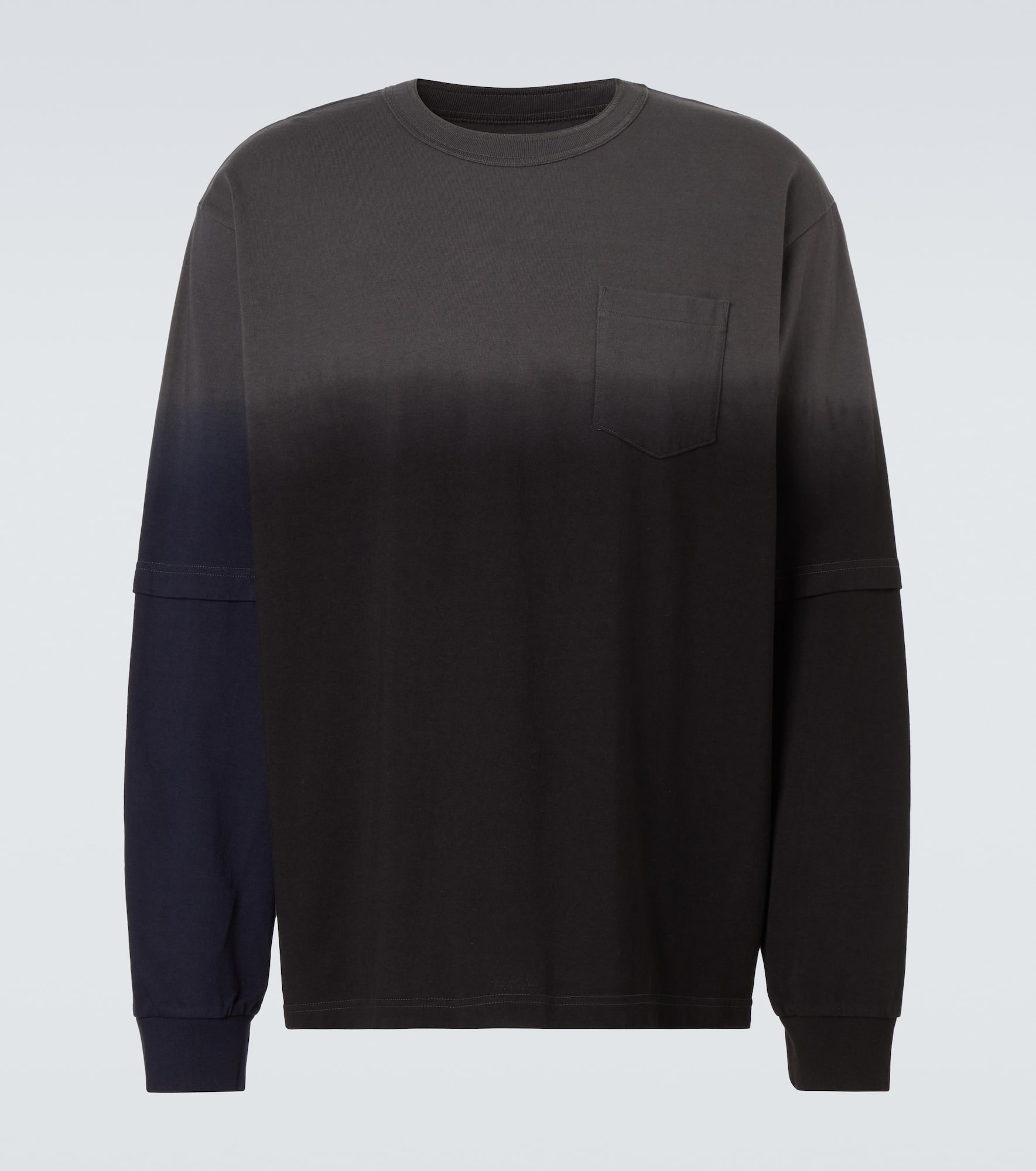 Sacai’s penchant for hybrid designs sees contrasting textures, fabrics, and techniques combined to create entirely unique and innovative styles. Made from cotton dyed in black and grey, this sweatshirt features a crewneck silhouette with a breast pocket. Product Details - Material: 100% cotton - Care instructions: machine wash at 30 degrees - Made in Japan - Designer color name: Black - Item color: black - Collar: crewneck - Pockets: breast pocket - Cuff: ribbed - Item number: P01068435 Size & Fit - True to size - Dropped shoulders - Designed for a loose fit - Slightly stretchy fabric - Falls below the hip - Height of model is 189cm-74.5" and wears a size 4