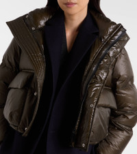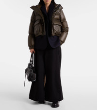 Layering becomes effortless with innovative pieces such as this Sacai down jacket in khaki green and blue. A longline wool underlayer is topped with a cropped down-paneled one, maximizing both warmth and style. Product Details - Material: 100% nylon - Care instructions: dry clean - Made in China - Designer color name: Khaki X Navy - Item color: green, blue - Material II: 100% wool - Lining: 100% nylon - Lining II: 100% cupro - Filling: 90% down, 10% feathers - Filling II: 100% polyester - Contains non-textile parts of animal origin - Cuff: elasticated - Pockets: buttoned pockets, flap pockets - Closure: two-way zipped front with snap-button fastenings, single-breasted (two buttons) - Vent: single - Item number: P01099147 Size & Fit - True to size - Designed for a loose fit - Adjustable hem - Non-stretchy fabric - Falls below the hip - The model seen in the picture is 178cm-5'10" and wearing a size 1