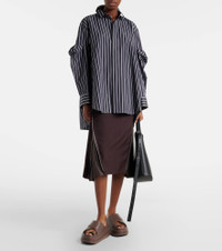 Sacai’s penchant for hybrid designs sees contrasting textures, fabrics, and techniques combined to create entirely unique and innovative styles. These slides feature crossed upper straps and sit atop platform soles for ultimate cushioning. Product Details - Upper: rubber - Lining: rubber - Sole: rubber insole and sole - Color: brown - Toe shape: round open toe - Made in China - Includes: dust bag, shoe box - Designer color name: Brown - Item number: P01164170 Size & Fit - Fits large to size - we recommend trying one size smaller - European sizes - 4cm-1.5" platform (size EU 38) - 5,5cm-2" wedge heel (size EU 38)