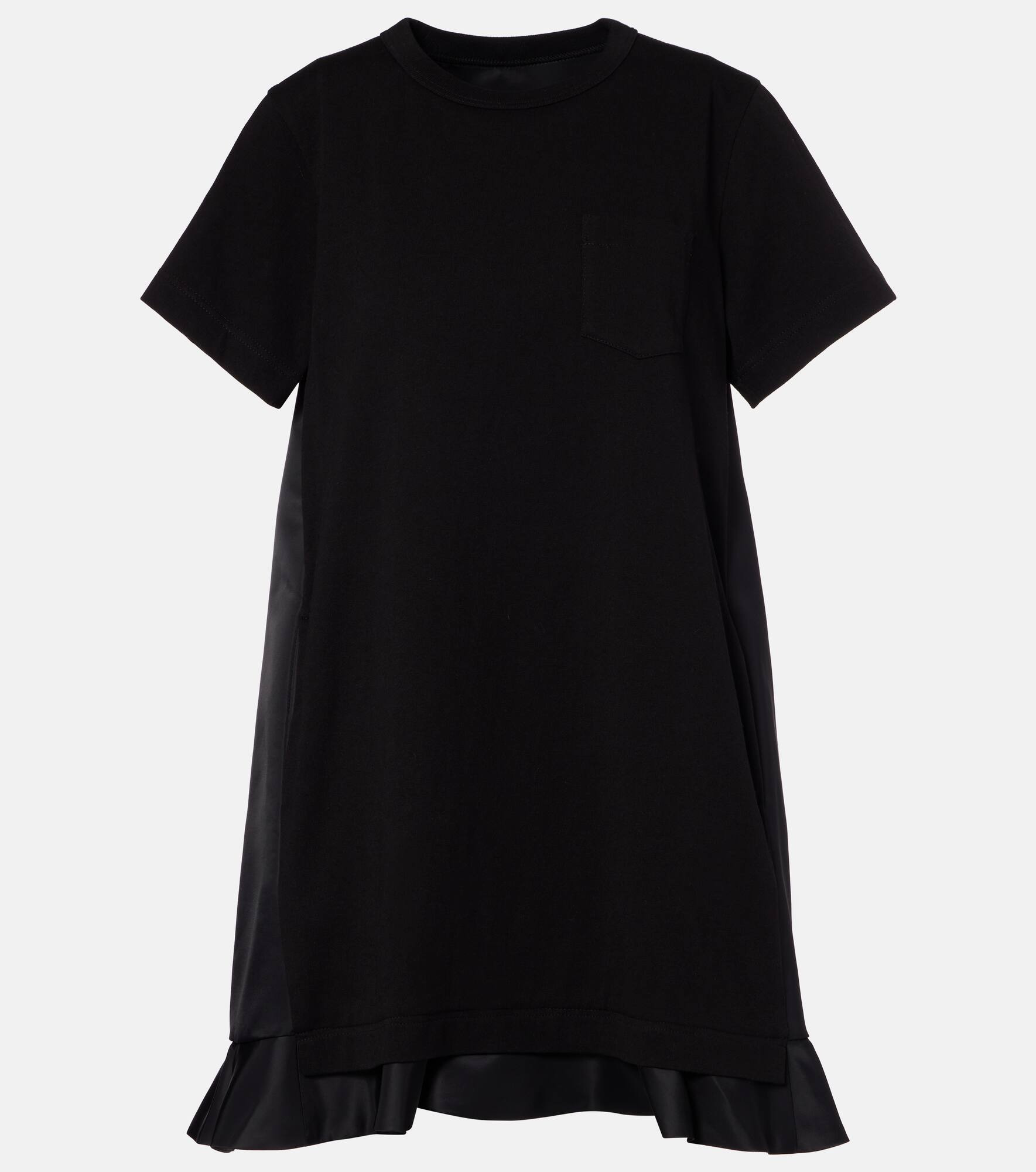 Japanese label Sacai experiments with textures and shapes to create compelling clothing for the modern woman. Made purely from cotton, this minidress features a ruffled hemline and short sleeves. Product Details - Material: 100% cotton - Care instructions: dry clean - Made in Japan - Designer color name: Black - Item color: black - Material II: 100% nylon - Material III: 100% cupro - Collar: crewneck - Pockets: side slit pockets, breast pocket - Item number: P01066698 Size & Fit - True to size - Designed for a loose fit - Partly stretchy fabric - The model seen in the picture is 178cm-5'10" and wearing a size 1