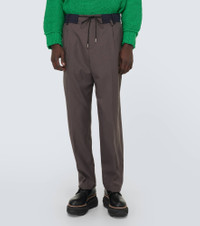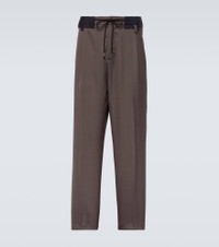 Slim-Leg Pleated Colour-Block Woven Drawstring Trousers