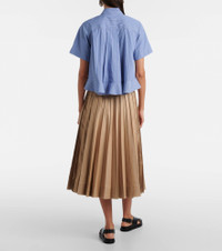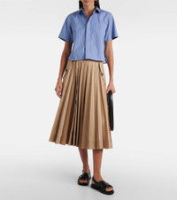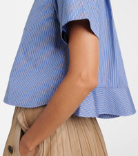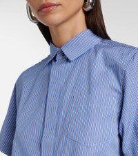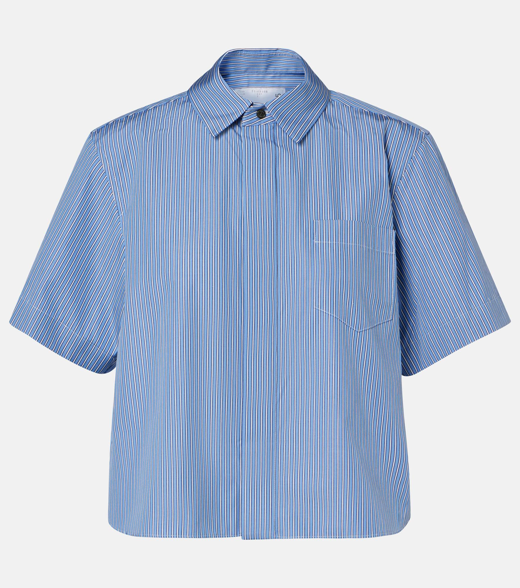 Sacai’s penchant for hybrid designs sees contrasting textures, fabrics, and techniques combined to create entirely unique and innovative styles. Crafted from striped cotton poplin, this shirt is cut to a relaxed fit and features a classic collar and buttoned front. Product Details - Material: 100% cotton - Care instructions: dry clean - Made in Japan - Designer color name: Blue Stripe - Item color: blue - Closure: buttoned front - Collar: classic (Straight point) - Pockets: patch - Item number: P01066703 Size & Fit - True to size - Designed for a loose fit - Non-stretchy fabric - Falls to the hip - The model seen in the picture is 178cm-5'10" and wearing a size 1