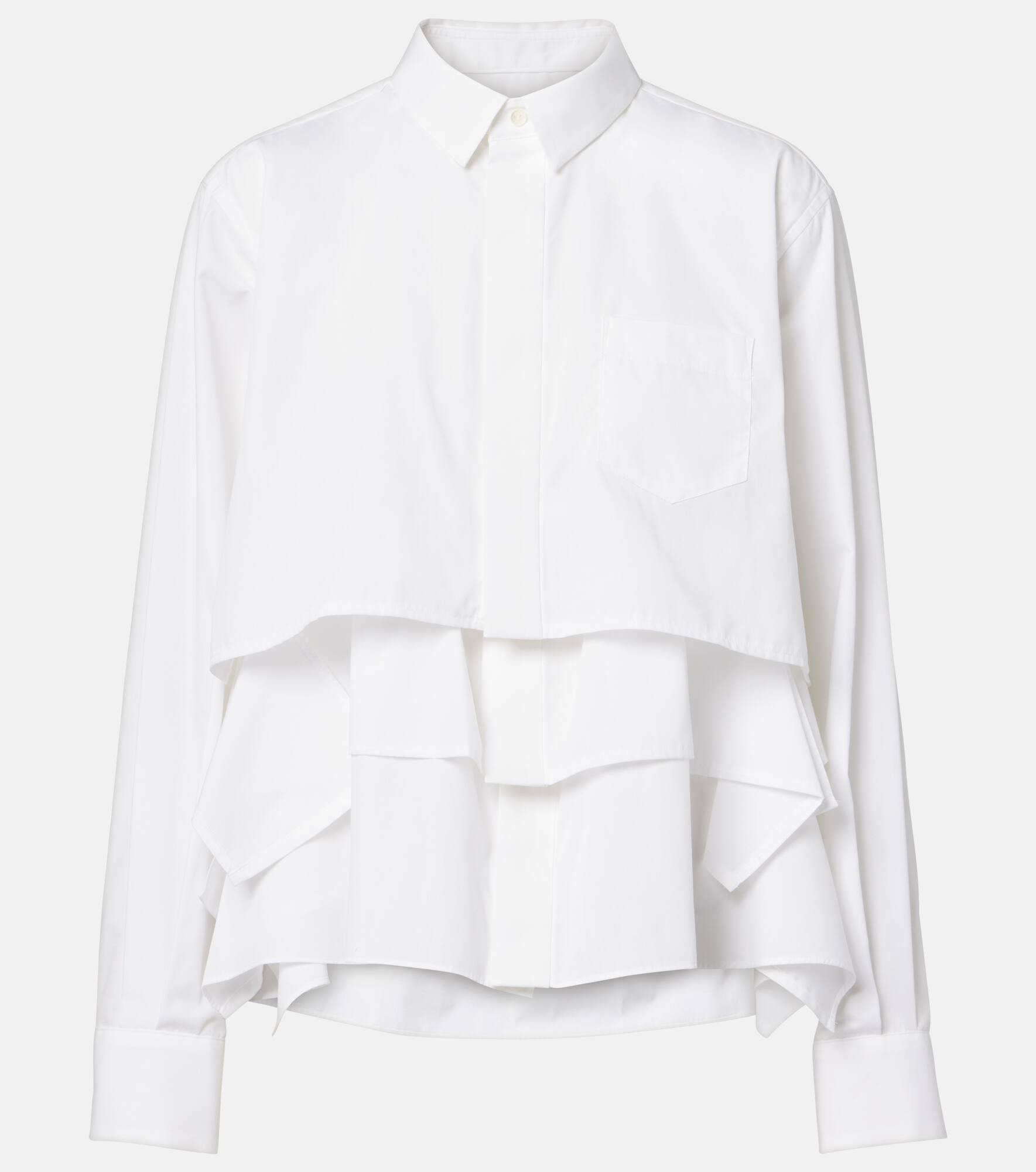 Crafted from poplin, this shirt by Sacai features a tiered design. Featuring a classic collar, chest pocket, and buttoned cuffs, gracefully finished with concealed button placket fastenings. Product Details - Material: 65% polyester, 35% cotton - Care instructions: dry clean - Made in Japan - Designer color name: Off White - Item color: white - Lining: 100% polyester - Collar: classic (Straight point) - Cuff: buttoned - Pockets: angled chest pocket - Closure: concealed button placket - Item number: P01099135 Size & Fit - True to size - Designed for a loose fit - Non-stretchy fabric - Falls to the hip - The model seen in the picture is 178cm-5'10" and wearing a size 1