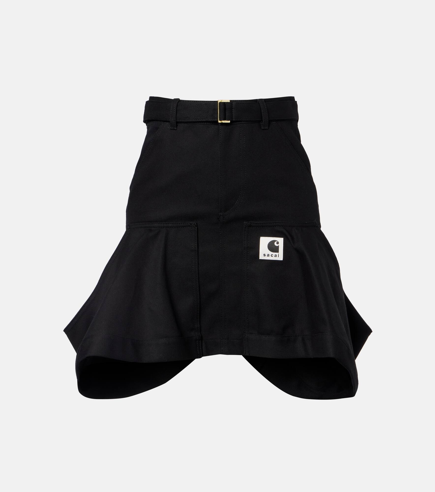 Seeking to create enduring utilitarian styles, Sacai joins forces with Carhatt to design this miniskirt. The unique piece is made from pure cotton canvas into a distinct silhouette with a ruffled, exaggerated hem and belted waist. Product Details - Material: 100% cotton - Care instructions: specialist clean - Made in Japan - Designer color name: Black - Item color: black - Lining: 100% polyester - Closure: zipper, hook fastening - Pockets: five pockets - Belt loops - Detachable belt - Item number: P01119818 Size & Fit - True to size - Non-stretchy fabric - High-waisted - The model seen in the picture is 178cm-5'10" and wearing a size 1