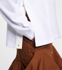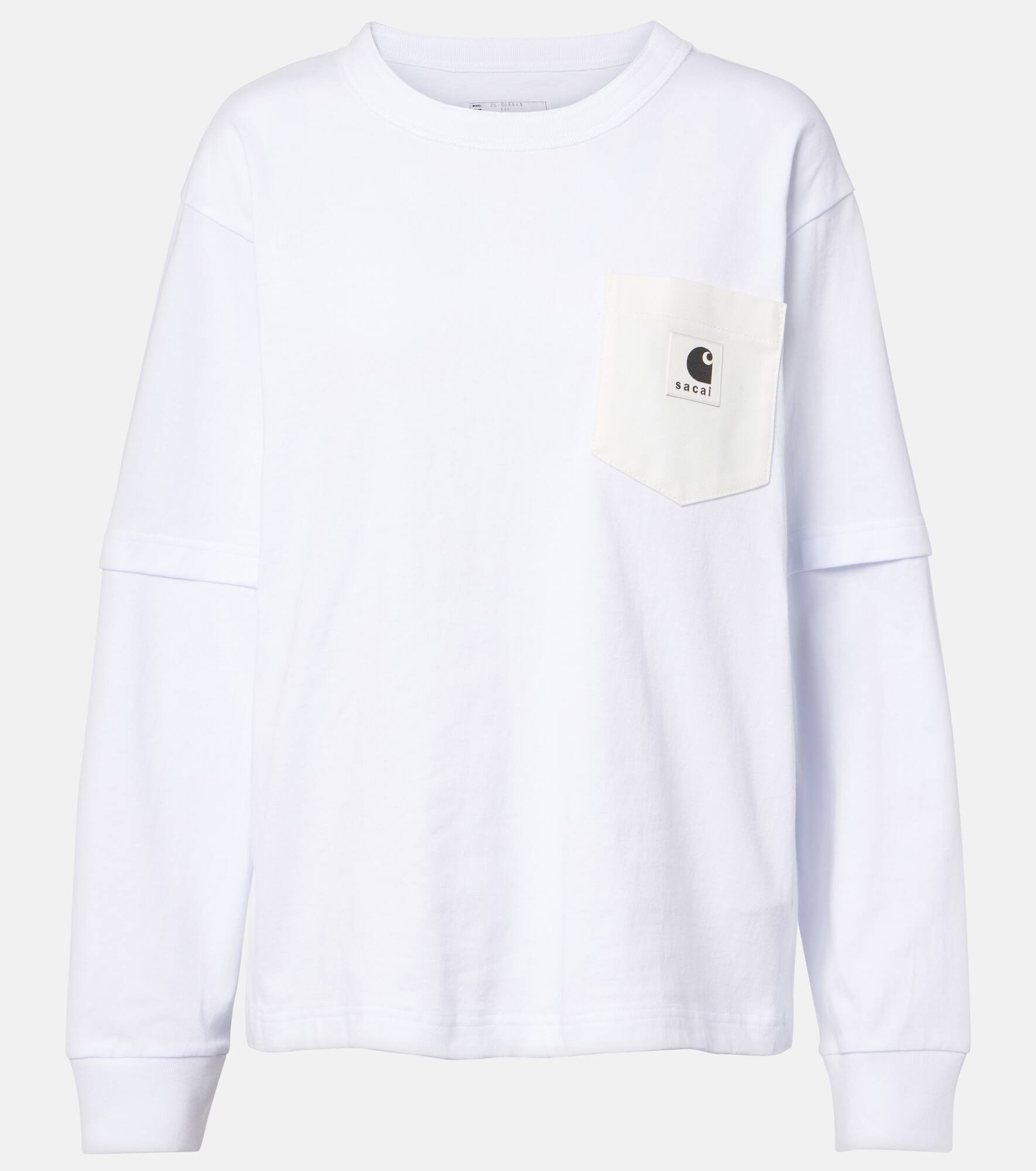 This long-sleeve top from Sacai x Carhartt is made from cotton jersey and cut to a layered, oversized silhouette. The style has a crewneck and a branded patch pocket on the front. Product Details - Material: 100% cotton - Care instructions: machine wash at 30 degrees - Made in Japan - Designer color name: White - Item color: white - Collar: crewneck - Pockets: angled chest pocket - Cuff: ribbed - Closure: snap-buttoned sides - Item number: P01119827 Size & Fit - True to size - For a closer fit, we recommend taking one size down - Oversized - Slightly stretchy fabric - Falls below the hip - The model seen in the picture is 178cm-5'10" and wearing a size 1