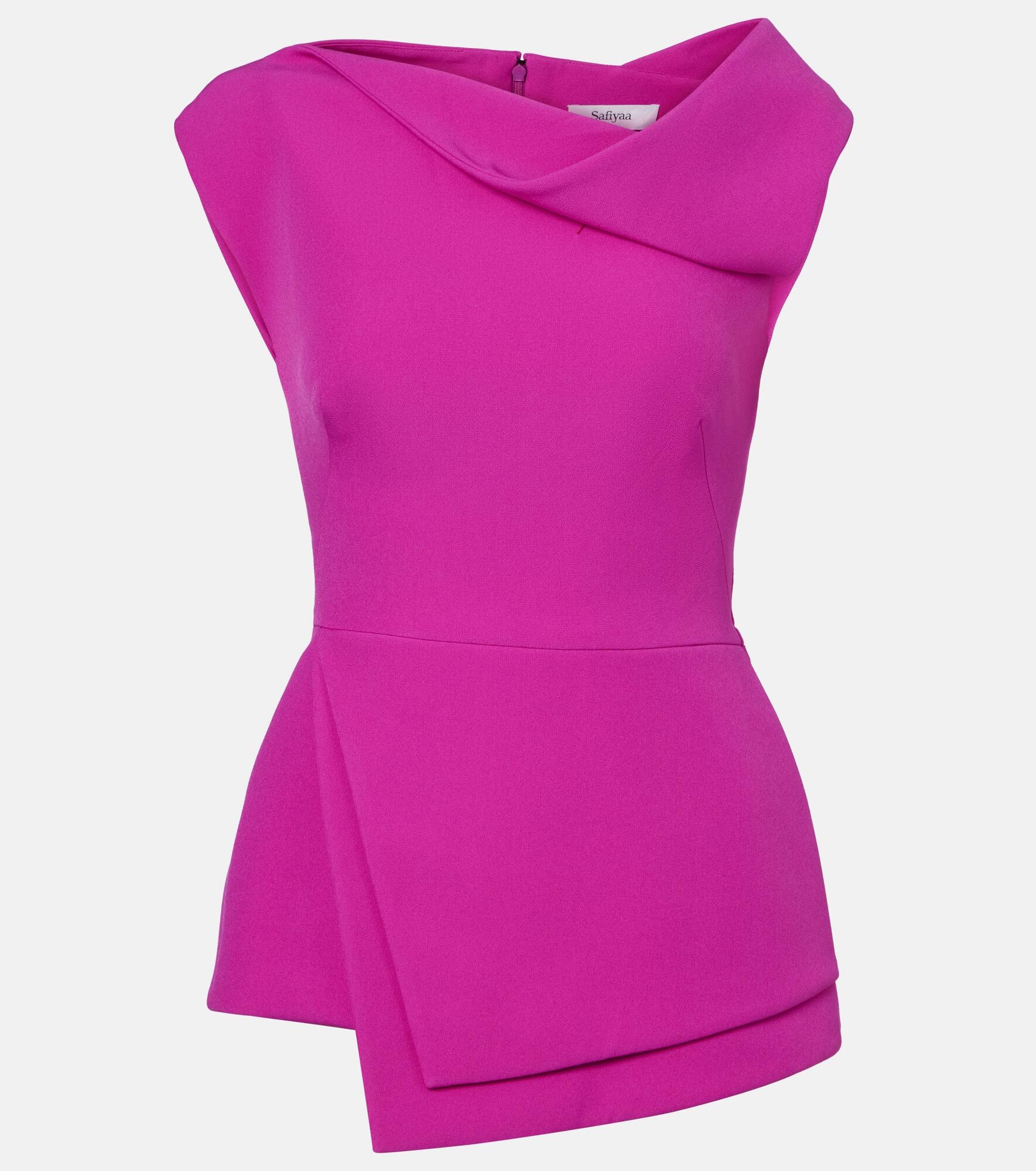 Elegant and understated, the Farrah top features a peplum silhouette with a draped neckline and asymmetric hem. This piece is made from Safiyaa's signature heavy crepe – a fabric that is favored for its graceful draping qualities. Product Details - Material: 92% polyester, 8% elastane - Care instructions: dry clean - Made in Lithuania - Designer color name: Pompeii - Item color: pink - Lining: 97% polyester, 3% elastane - Item number: P01045426 Size & Fit - True to size - Cinched waist - Non-stretchy fabric - Falls to the hip - The model seen in the picture is 178cm-5'10" and wearing a size FR 36