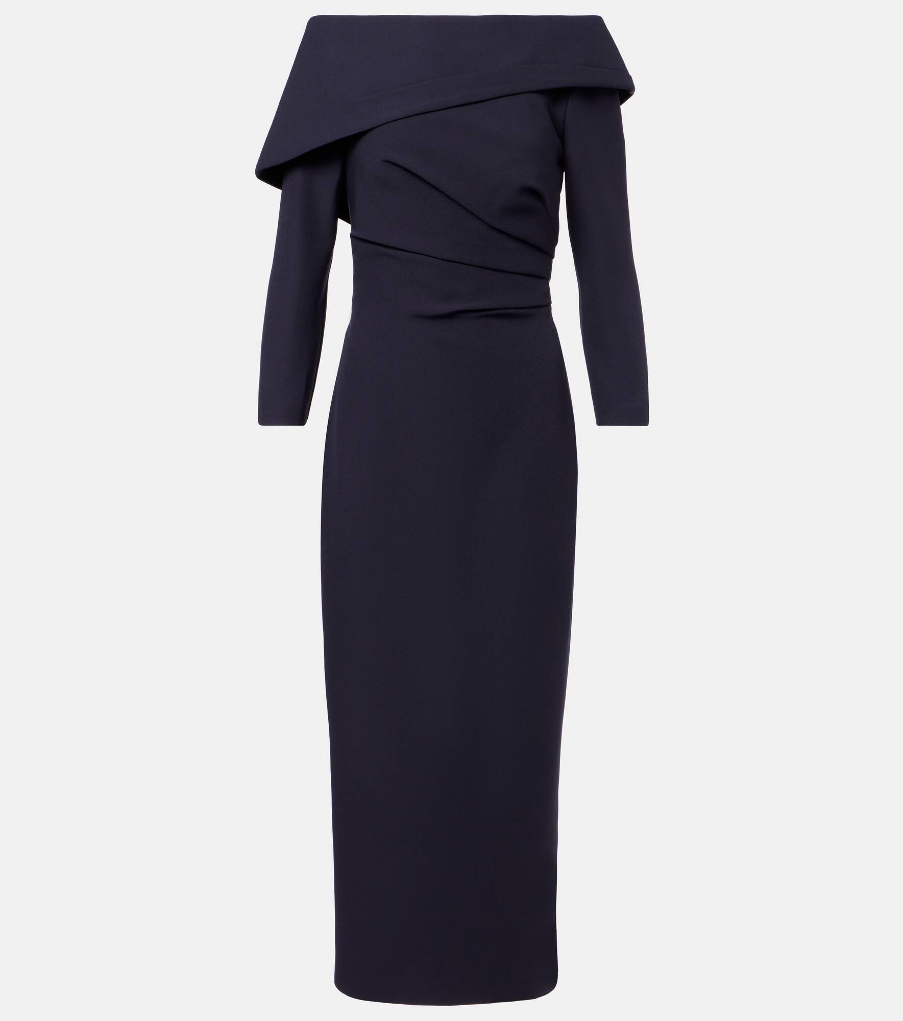 This off-shoulder dress is made from Safiyaa's signature heavy crepe – a fabric that is favored for its graceful draping qualities. It features a flattering asymmetric neckline, a long slit in the back, and is gathered on one side. Product Details - Material: 92% polyester, 8% elastane - Care instructions: dry clean - Made in Turkey - Designer color name: Midnight Navy - Item color: blue - Closure: zip and hook fastening - Long vent - Sleeves: long-sleeved - Item number: P01045456 Size & Fit - True to size - Off-the-shoulder - Fitted - Partly stretchy fabric - slit length 32cm-12.5" - The model seen in the picture is 178cm-5'10" and wearing a size FR 36