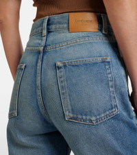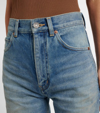 Add an edgy flair to your everyday ensembles with the 70's jeans from Saint Laurent. The pair is cut to a high-rise silhouette, and the washed finish creates a vintage look. Product Details - Material: 100% cotton - Care instructions: machine wash at 30 degrees - Made in Japan - Color: blue - Designer color name: Midi Blue - Item color: blue - Pocket lining: 100% cotton - Details: 100% calf leather - Contains non-textile parts of animal origin - Closure: zipper fly, button fastening - Pockets: five pockets - Item number: P01128219 Size & Fit - Fits small to size - we recommend trying two sizes larger - Sizing adapted to taller women - Non-stretchy fabric - Bootcut - High-waisted - The model seen in the picture is 178cm-5'10" and wearing a size 28