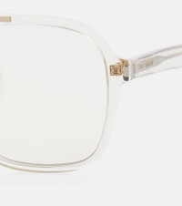 Give your accessories edit a minimalist makeover with these Saint Laurent aviator sunglasses. Linked by a double bridge, they're made from transparent acetate with subtle logo and gold-toned detailing. Product Details - Frame color: transparent - Frame material: acetate - Lens color: nude - comes with cleaning cloth - comes in a logo-embossed case - Lens filter category 1 - Made in Italy - Item number: P00688626 Size & Fit - Lens width: 58mm-2.3" - Bridge size: 16mm-0.65" - Earpiece length: 145mm-5.7"