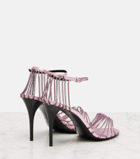 Since its conception in 1961, Saint Laurent has been coveted for its elegant Parisian aesthetic. Finished with metallic leather trims, the Babylone sandals are defined by their chain-link construction, 90mm stiletto heels, and signature monogram hardware. Product Details - Upper: brass, leather - Lining: leather - Sole: leather insole and sole - Color: pink - Toe shape: almond toe - Made in Italy - Includes: dust bag, shoe box - Designer color name: Kitty Pink - Item color: pink - Hardware color: gold - Closure: buckle-fastening ankle strap - Item number: P01135874 Size & Fit - True to size - Half sizes please take the next size up - European sizes - 9cm-3.5" heel