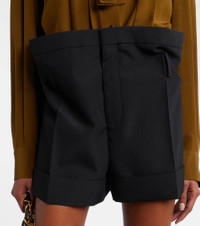 These shorts are Italian-crafted from mohair and wool with a paperbag-style belted waist and upturned cuffs. Tailoring has been synonymous with Saint Laurent since the "Le Smoking" suit was designed in the 1960s. Product Details - Material: 62% mohair, 38% wool - Care instructions: dry clean - Made in Italy - Color: black - Designer color name: Noir - Trim: 62% mohair, 38% wool - Pocket lining: 100% viscose - Contains non-textile parts of animal origin - Belt loops - Closure: concealed button placket - Pockets: side slit pockets, back pockets - Item number: P01128167 Size & Fit - True to size - Non-stretchy fabric - Wide-leg - High-waisted - Height of model is 178cm-70" and wears a size FR 34