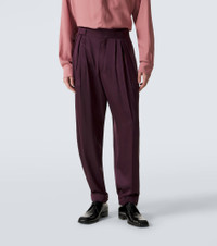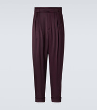 Tailoring has been synonymous with Saint Laurent since the "Le Smoking" suit was designed in the 1960s. These straight pants are made from silk satin and feature triple pleats, a center crease, and a belted waist. Product Details - Material: 100% silk - Care instructions: dry clean - Made in Italy - Color: purple - Designer color name: Prune - Details: 100% silk - Pocket lining: 97% cotton, 3% elastane - Contains non-textile parts of animal origin - Closure: zipper fly, button and hook fastenings - Pockets: side slit pockets, back pockets - Item number: P01142383 Size & Fit - True to size - Non-stretchy fabric - Straight leg - Height of model is 187cm-73.5" and wears a size 50