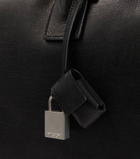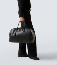 Organize memorable trips in style with the Bowling duffel bag by Saint Laurent. Crafted from leather, the design features two top handles and a zipped top, and is finished with a detachable, logo-engraved charm. Product Details - Material: calf leather - Lining: fabric - Made in Italy - Designer color name: Black - Item color: black - Shoulder straps - Closure: zipped top - Internal details: internal zipped pockets - Hardware color: silver - Includes: dust bag - Detachable charm - Item number: P01080775 Size & Fit - Height 30cm-12" - Width 48cm-19" - Depth 25cm-10" - Length of handles 50cm-19.5"