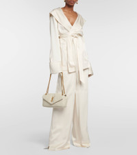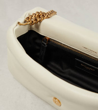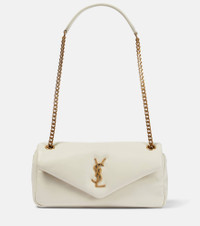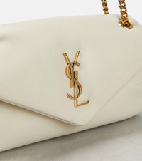 One of the most famous symbols in fashion, the YSL monogram consists of the intertwined initials of Saint Laurent's founder. The Calypso shoulder bag is made from soft leather with snap-button closure and a leather and metal chain strap. Product Details - Chain and leather shoulder strap - Material: lamb leather - Internal details: leather lining, internal zipped pocket - Color of chain strap: gold - Closure: snap-buttoned fastening - Comes with dust bag - Made in Italy - Item number: P00837775 Size & Fit - Height 14cm-5.5" - Width 26cm-10" - Depth 6cm-2.5" - Length of handles 65cm-25.5"