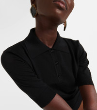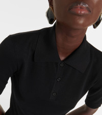 Product Details - Material: 35% cashmere, 35% wool, 30% silk - Care instructions: dry clean - Made in Italy - Designer color name: Noir - Closure: partially buttoned front - Collar: polo collar - Item number: P00954284 Size & Fit - True to size - Fitted - Stretchy fabric - Cropped - The model seen in the picture is 178cm-5'10" and wearing a size XS