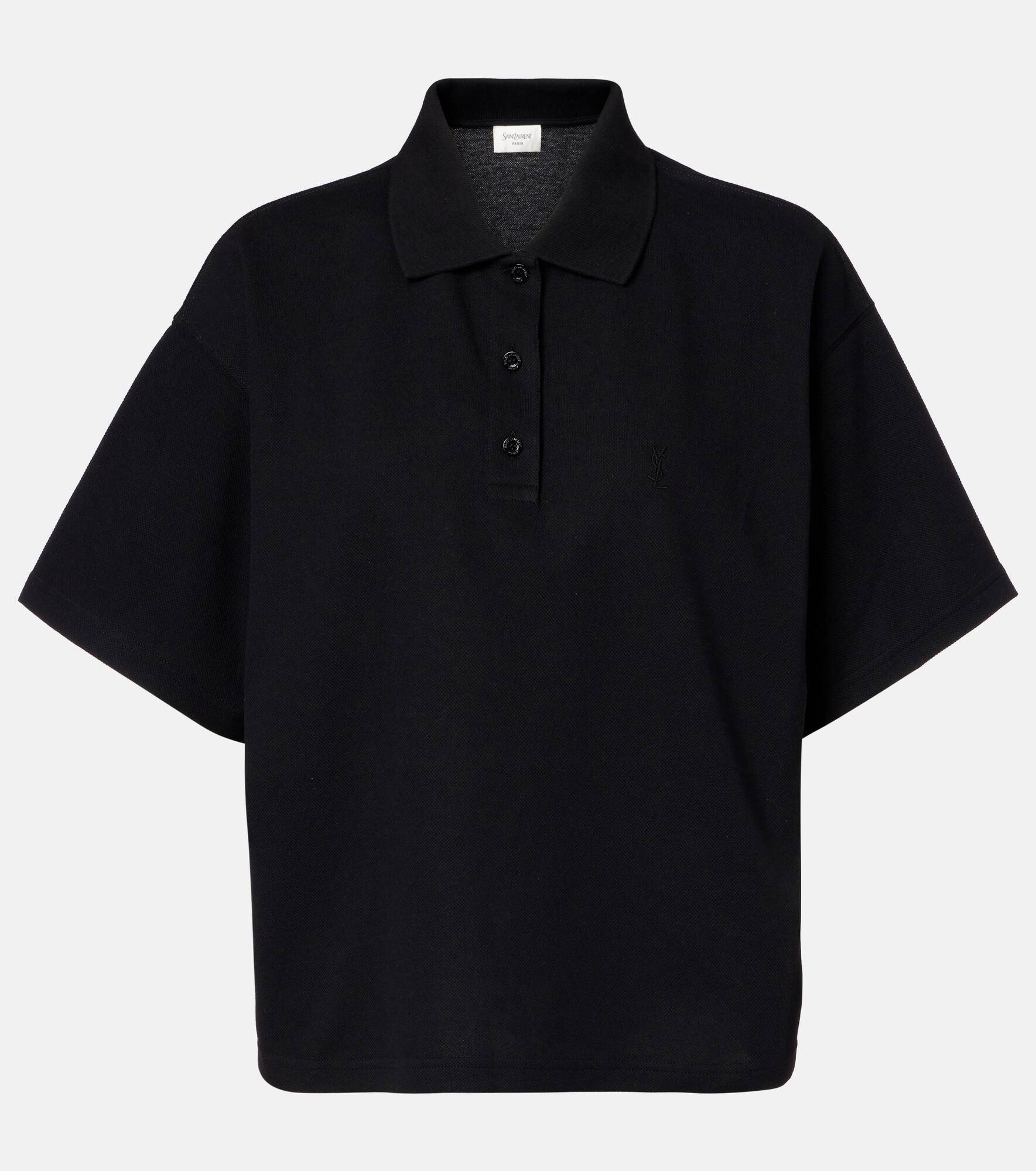 Since its conception in 1961, Saint Laurent has been coveted for its elegant Parisian aesthetic. Made from cotton-blend pique, the Cassandre polo shirt is defined by its oversized silhouette and minimalistic, monochrome palette. Product Details - Material: 50% cotton, 50% polyester - Care instructions: machine wash at 30 degrees - Made in Italy - Designer color name: Noir - Item color: black - Item number: P01078591 Size & Fit - True to size - Dropped shoulders - Designed for a loose fit - Slightly stretchy fabric - Falls to the hip - The model seen in the picture is 178cm-5'10" and wearing a size XS
