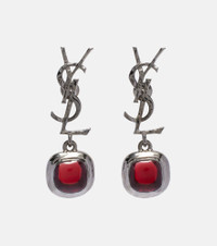 These Saint Laurent drop earrings are presented in a refined silver tone and adorned with a bright embellishment. The pair is finished with the signature Cassandre monogram, which consists of the intertwined initials of Saint Laurent's founder. Product Details - Material: brass, ruthenium - Made in Portugal - Closure: pin fastening - Color: silver - Item number: P01164915 Size & Fit - Length 4cm-1.5" - Max. width 1,2cm-0.5"