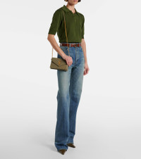 Product Details - Material: lamb leather - Lining: leather - Made in Italy - Designer color name: Strong Moss - Item color: green - Closure: magnetic fastening - Color of chain strap: gold - Detachable chain shoulder strap - Hardware color: gold - Color of fastening: gold - Internal details: Card slots, centre slot compartment, internal zipped pocket - Includes: box, dust bag - Item number: P01040424 Size & Fit - Height 12cm-4.5" - Width 19cm-7.5" - Depth 4cm-1.5" - Chain length 118cm-46.5"