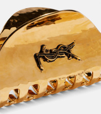 Add a touch of glamour with the Cassandre hair clip from Saint Laurent. Crafted in Italy from brass with the brand's logo detail, this chic accessory combines elegance and style to enhance any hairstyle. Product Details - Material: gold-plated brass - Made in Italy - Item color: gold - Includes: box, dust bag - Item number: P01088825 Size & Fit - Length 6cm-2.5" - Max. width 2,5cm-1"