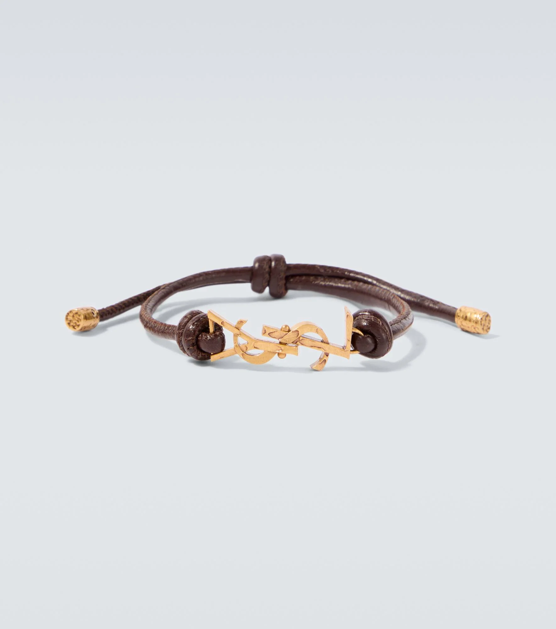 One of the most famous symbols in fashion, the YSL monogram consists of the intertwined initials of Saint Laurent's founder. The motif decorates this bracelet, made from supple leather. Product Details - Material: leather, metal - Made in Italy - Includes: dust bag, box - Color: brown - Item number: P01142334