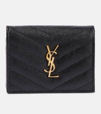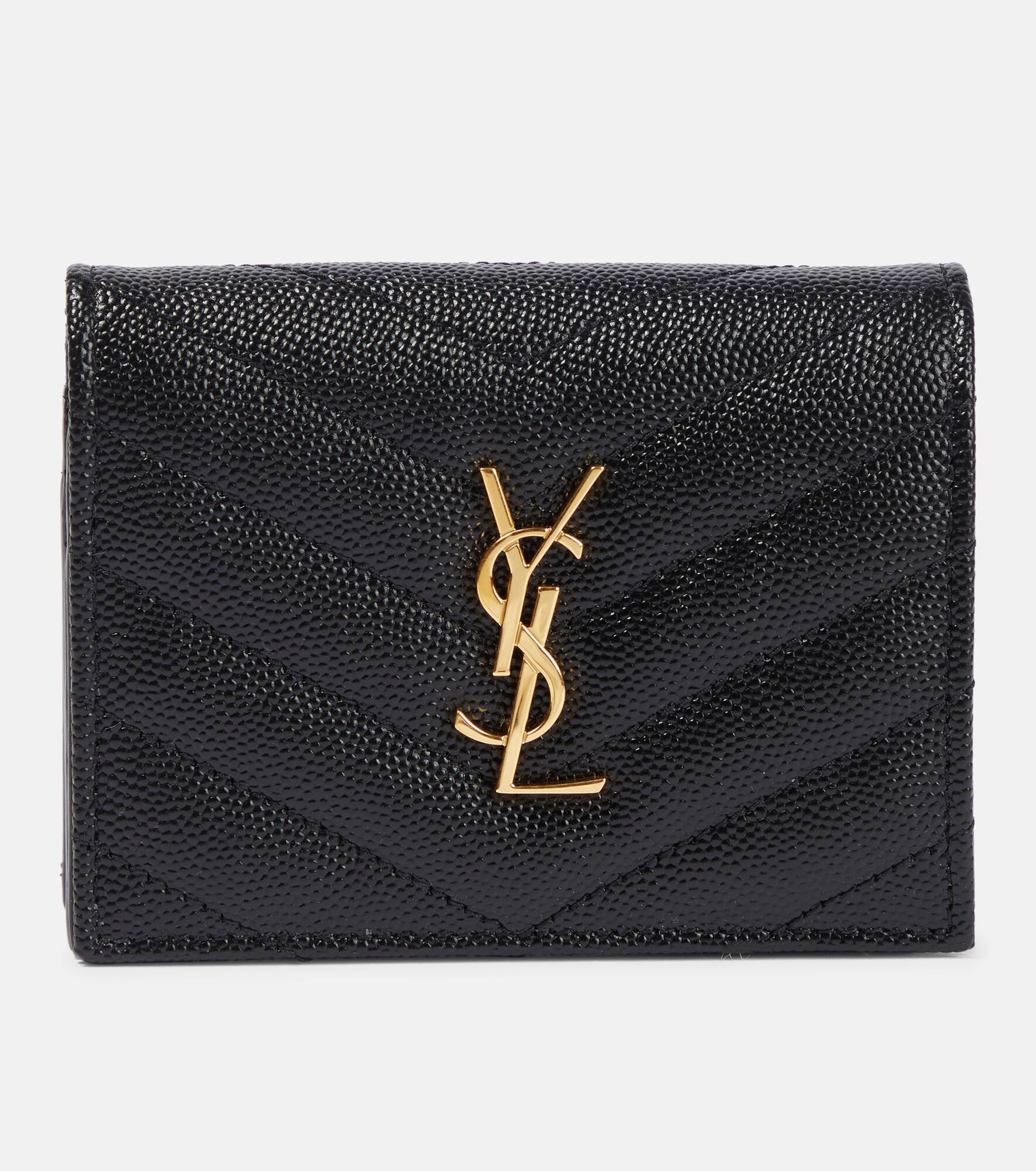 Saint Laurent refreshes the quilted Cassandre design in this flap card case edition. Made in Italy from quilted calfskin leather and featuring the iconic YSL metal signature on the front, this design opens up butterfly-style. Product Details - Material: leather - Lining: leather - Made in Italy - Designer color name: Noir - Internal details: internal zipped pouch, internal slot pocket, Card slots - Closure: snap-buttoned fastening - Back slot pocket - Includes: dust bag, box - Item number: P00709719 Size & Fit - Height 8,5cm-3.5" - Width 11cm-4.5" - Depth 3,5cm-1.5"